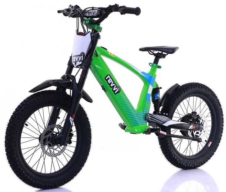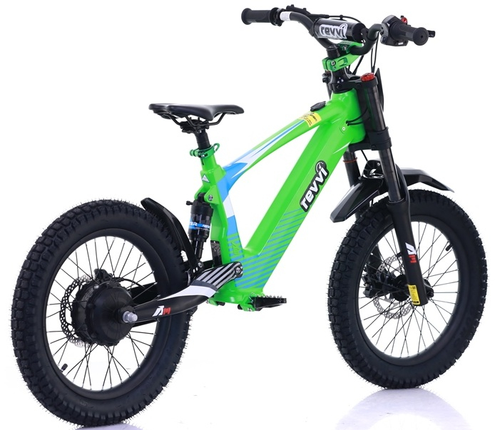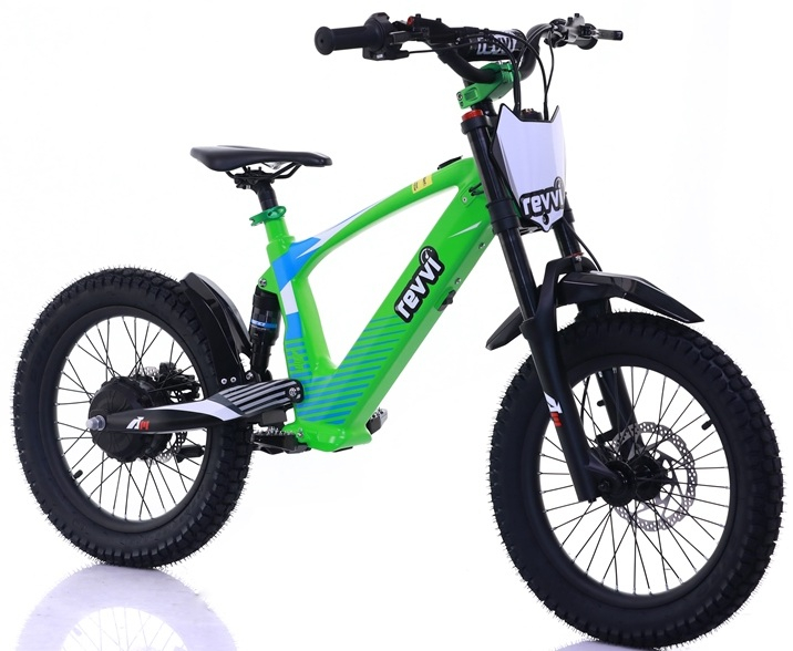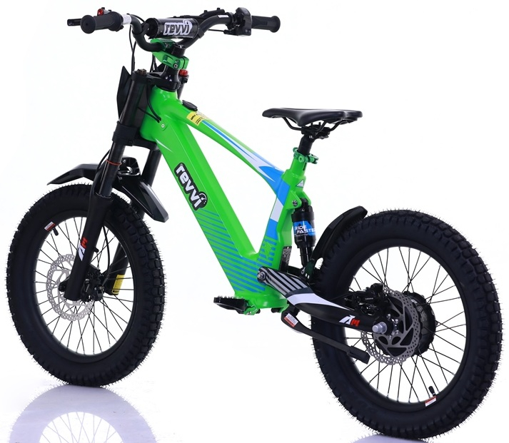A super light electric-powered motor bike that has been specifically designed for 8-12 year old riders, Weighing in at only 20kg's. The bike can be used on the slow speed setting (9.5mph) whilst the rider hone's there skills. Once they gain confidence they can progress onto the medium (13.5mph) and fast (20mph) speed settings. The bike features foldable MX style foot pegs and a full grip twist throttle. The bike also features Off road rubber air filled tyres suitable for various ground types & a hub motor that delivers reliable performance. The front and rear suspension offer's comfort while riding. Hydraulic front and rear disc brakes for great stopping performance.
