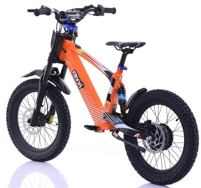 A super light electric-powered motor bike that has been specifically designed for 8-12 year old riders, Weighing in at only 20kg's. The bike can be used on the slow speed setting (9.5mph) whilst the rider hone's there skills. Once they gain confidence they can progress onto the medium (13.5mph) and fast (20mph) speed settings. The bike features foldable MX style foot pegs and a full grip twist throttle. The bike also features Off road rubber air filled tyres suitable for various ground types & a hub motor that delivers reliable performance. The front and rear suspension offer's comfort while riding. Hydraulic front and rear disc brakes for great stopping performance.